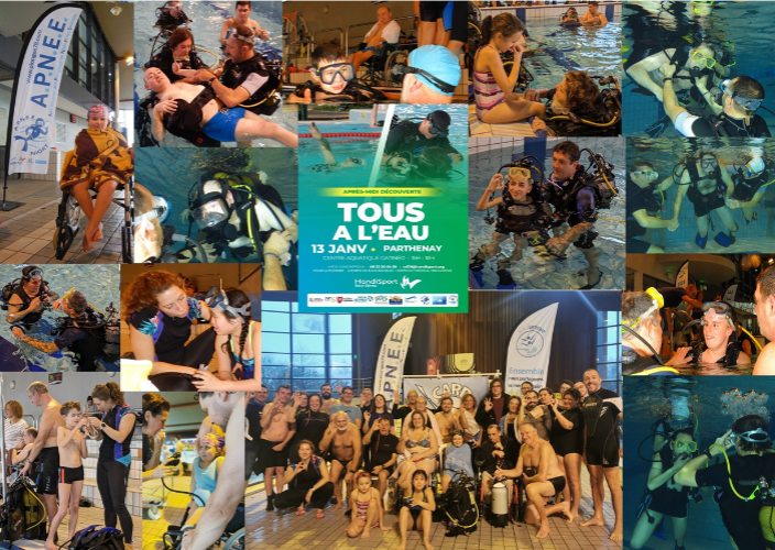 Vous avez été enthousiasmé(e) par les JO paralympiques, vous pensez que toute personne doit avoir accès aux activités sportives quel que soit son handicap physique, mental ou cognitif : la formation cadre handisub® vous intéressera ! La prochaine formation organisée par le CODEP79, aura lieu les 18, 19 et 25 janvier à Niort. Elle est ouverte à tous les initiateurs scaphandre E1 de la région. Elle comprend une réflexion en salle et une formation dans l’eau en situation. L’APNEE dispose d’une belle équipe coordonnée par Rodolphe Leliard. A Niort, les formations handisub® ont lieu le mercredi après midi à la piscine et se concluent par une sortie en milieu naturel en juin. La fiche d’inscription est disponible ici : https://plongee79.com/uploads/edito/672a799eedc58.pdf