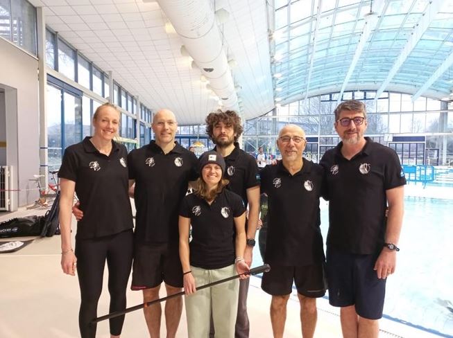 Ce dimanche 19 janvier 2025, l’équipe compétition d’apnée 79 était quasi au complet pour la troisième édition du trophée Garonn’apnée, compétition interrégionale de Nouvelle-Aquitaine et Occitanie. Quelques 60 compétiteurs avaient rendez-vous dans le bassin de 50 m du complexe Aquasud pour s’affronter dans les différentes disciplines liées à l’apnée. Nos compétiteurs ont particulièrement brillé puisqu’ils sont présents sur tous les podiums. En monopalme, chez les filles, Delphine Bilde réalise un record personnel à 166,74 m (médaille d’argent) ; chez les garçons, Cédric Rousseau s’empare de la médaille d’argent avec 220,80 m et Thomas Leberthe termine 4e avec un record personnel à 197,80 m. En bi-palmes, Delphine Bilde réalise 154,90 m (médaille d’or et record personnel) tandis que Jean-Baptiste Rossignol termine à 175,25 m (médaille d’argent et record personnel). En dynamique sans palme (brasse), Betty Bouyer est 9e avec 55,90 m, Cédric Rousseau médaille d’argent avec 171,55 m et Philippe Prempain réalise son record personnel à 77,30 m. Enfin dans l’épreuve de vitesse du 2 x 50 m, Betty Bouyer prend la médaille d’or avec 59 secondes tandis que Delphine Bilde réalise 1 minute et 24 secondes (médaille de bronze). Grâce à ce palmarès, plusieurs de nos compétiteurs devraient accéder au championnat de France d’apnée qui aura lieu en mai prochain. D’ici-là, ils participeront encore à plusieurs compétitions sélectives afin d’améliorer encore leurs performances. Des entraînements soutenus, un équipement sportif remarquable – la piscine de Pré Leroy à Niort – ainsi que le soutien de Niort Agglo, en particulier les créneaux piscine accordés, sont à l’origine de ces résultats.