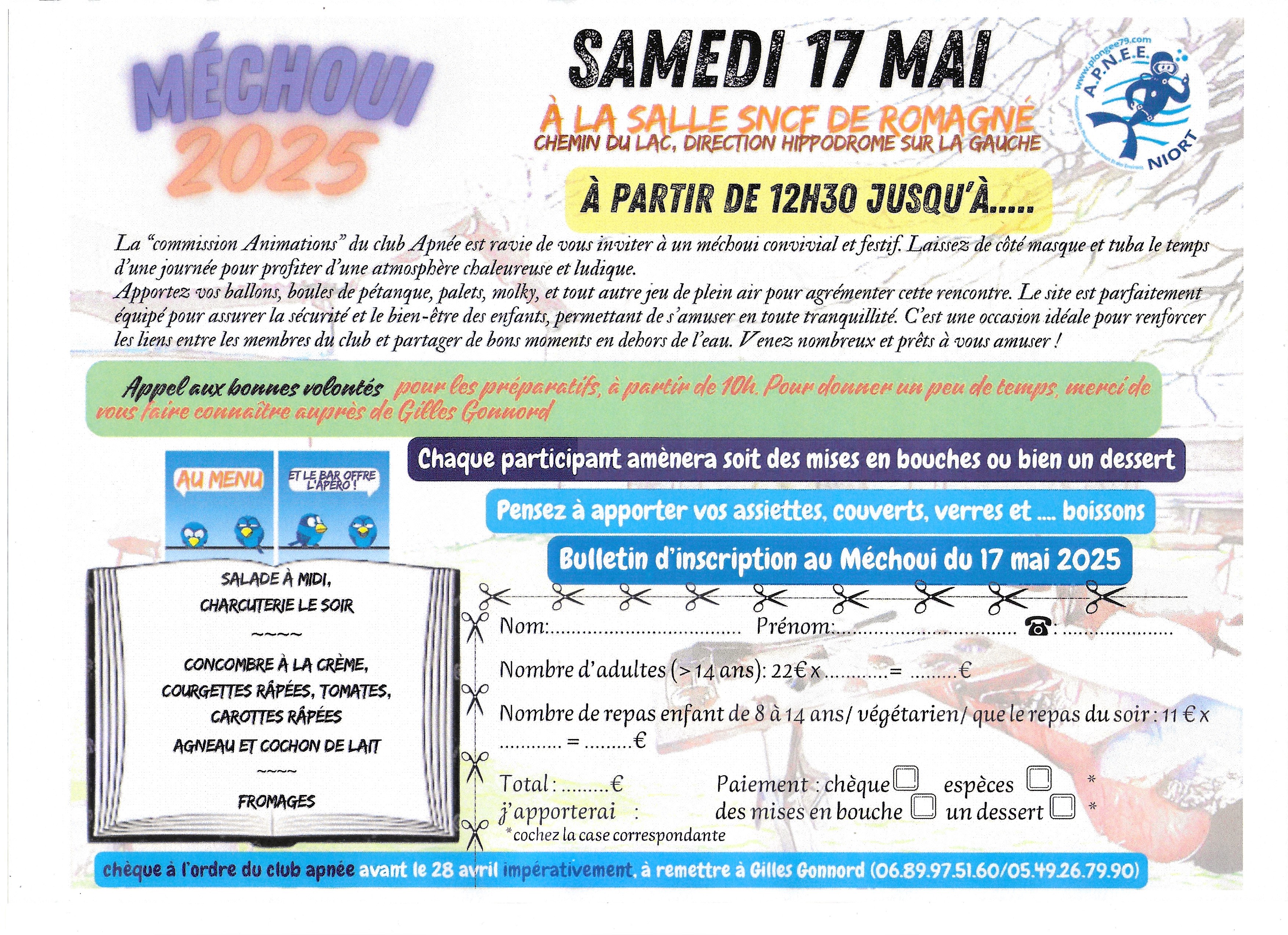 Venez nombreuses et nombreux au Méchoui du Club le 17 mai ! Modalités d'inscriptions via le flyer.
