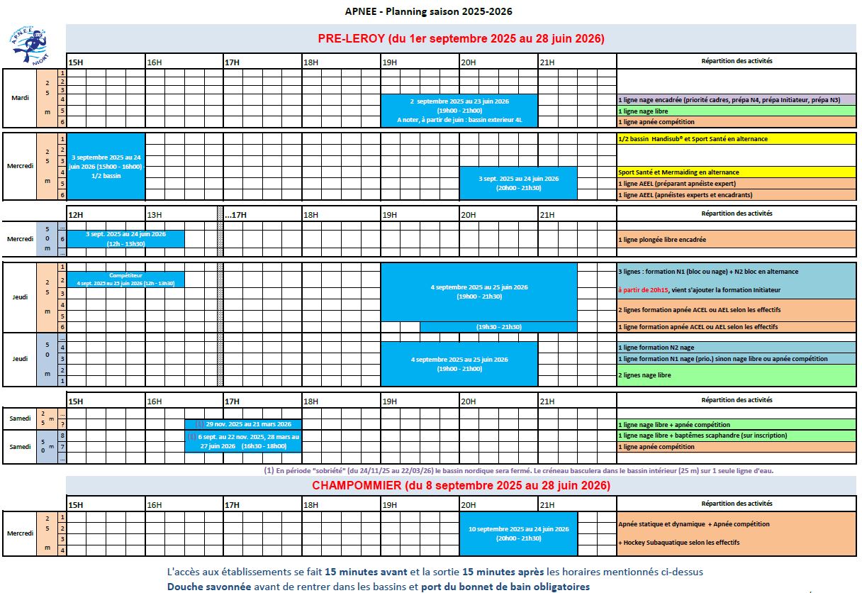 Vous voulez savoir quand a lieu votre entraînement ou profiter d'un créneau libre ? Consultez ce planning !
